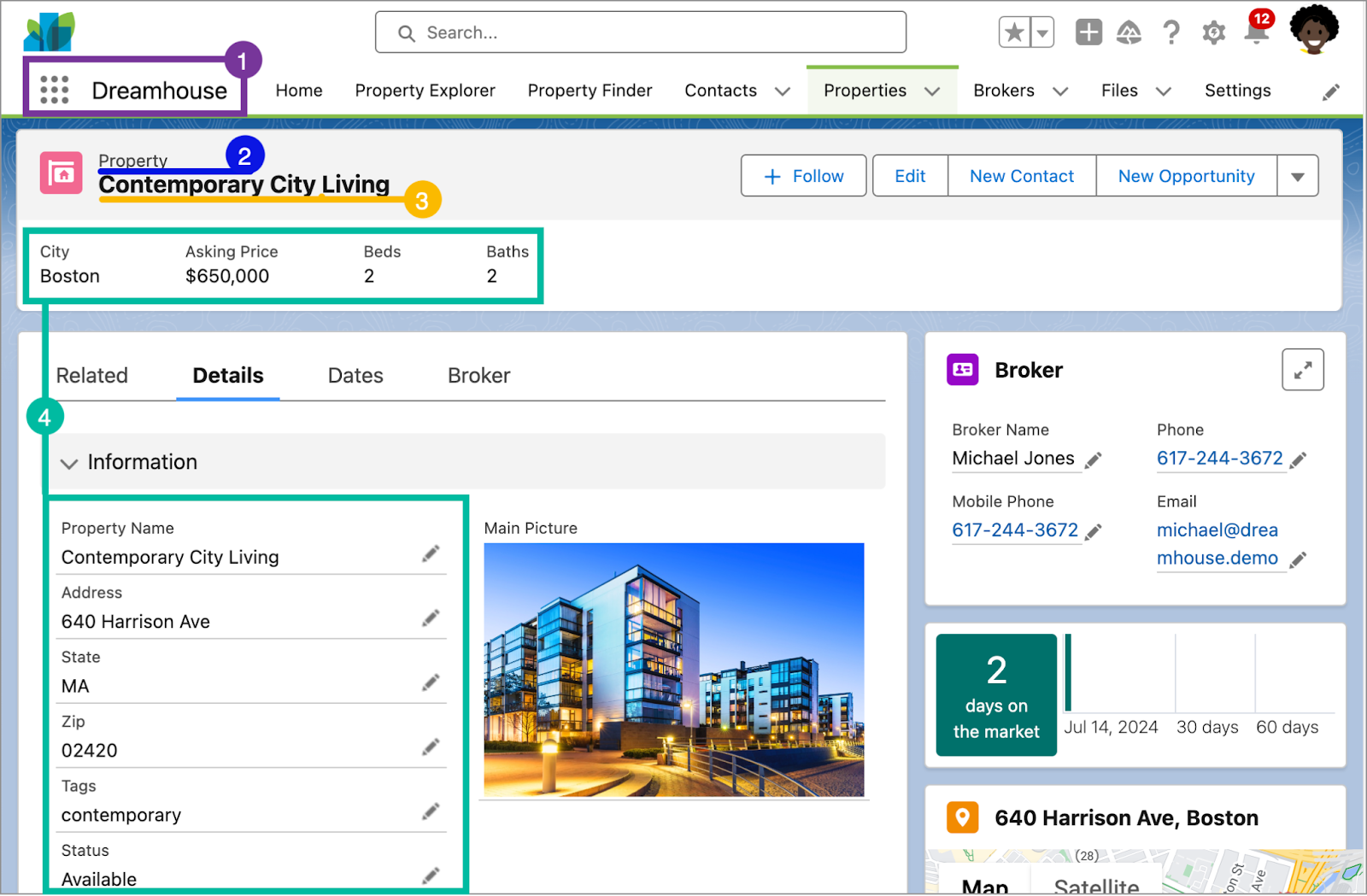 Let’s take a look at a page from the Dreamhouse app to define some of its important elements and how they relate to the database.